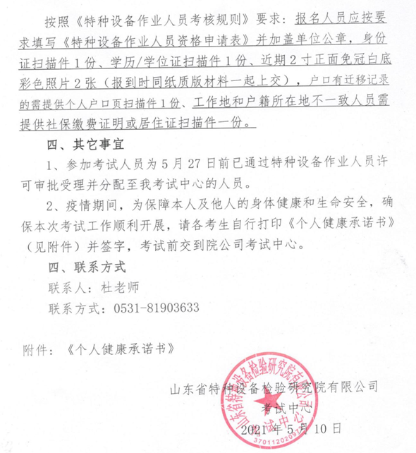 關于舉辦2021年第三期安全閥校驗(F)取證考試的通知